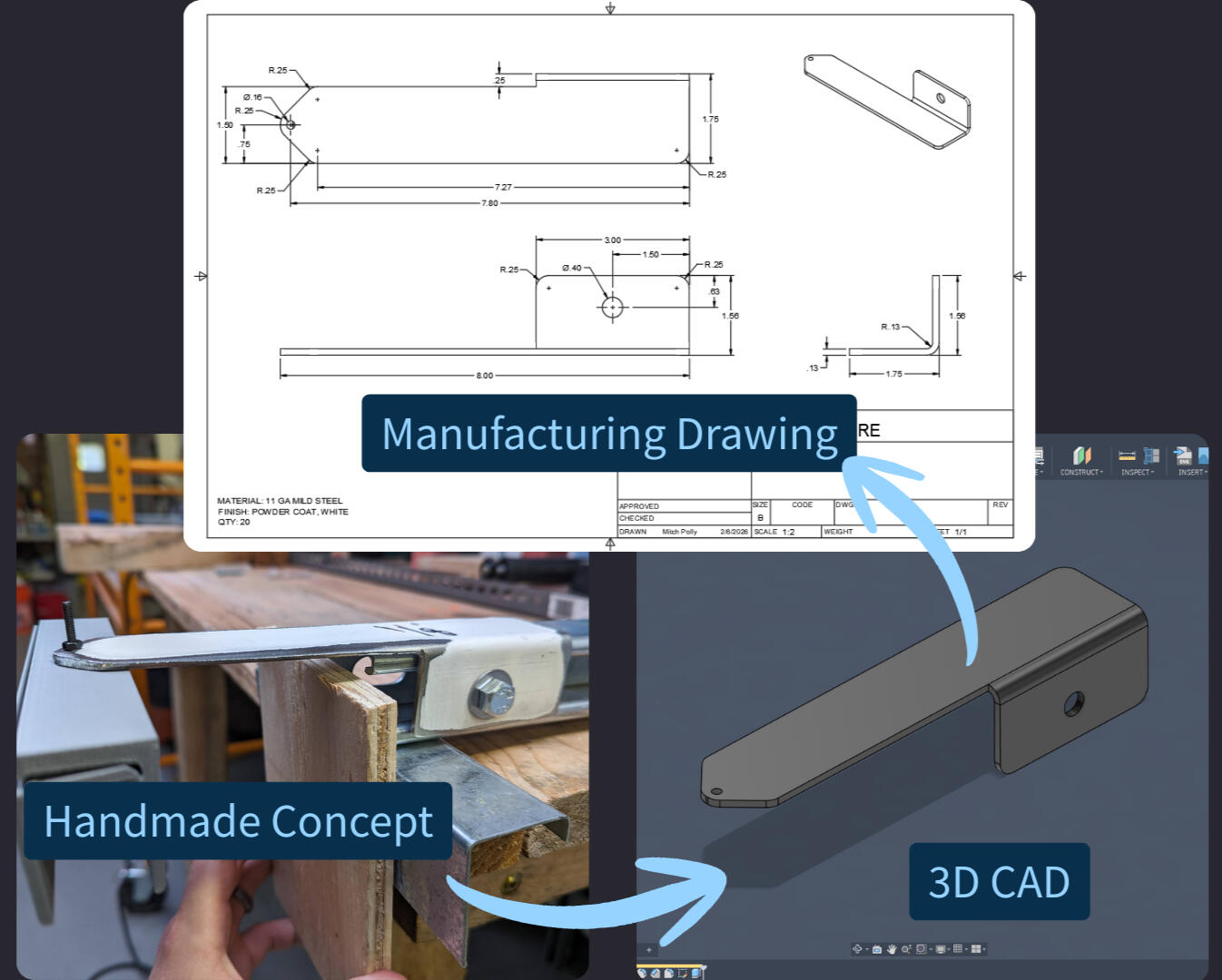 I help shop owners and technical directors break through production bottlenecks. With over 20 years of hands-on manufacturing design experience, from heavy sheet metal fabrication to precision architectural detail, I know how to design parts that actually fit. Whether you need a legacy component reverse-engineered, a custom assembly jig, or a quick prototype, I deliver accurate, shop-ready results. Fully insured and ready to get to work.